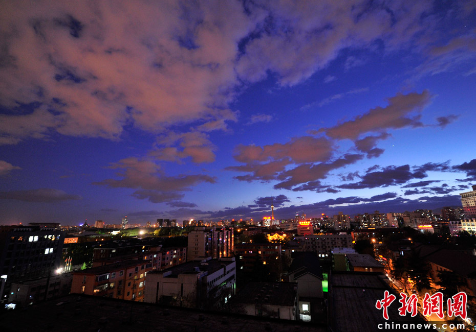 5月5日立夏,京城降雨今晨剛剛結束,霧氣伺機又起。傍晚時分,隨著四級北風的到來,京城天氣逐漸轉晴,霧氣慢慢消散天空彤云密布夜色瑰麗。中新網記者 金碩 攝
