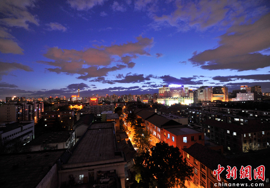 5月5日立夏,京城降雨今晨剛剛結(jié)束,霧氣伺機又起。傍晚時分,隨著四級北風的到來,京城天氣逐漸轉(zhuǎn)晴,霧氣慢慢消散天空彤云密布夜色瑰麗。中新網(wǎng)記者 金碩 攝
