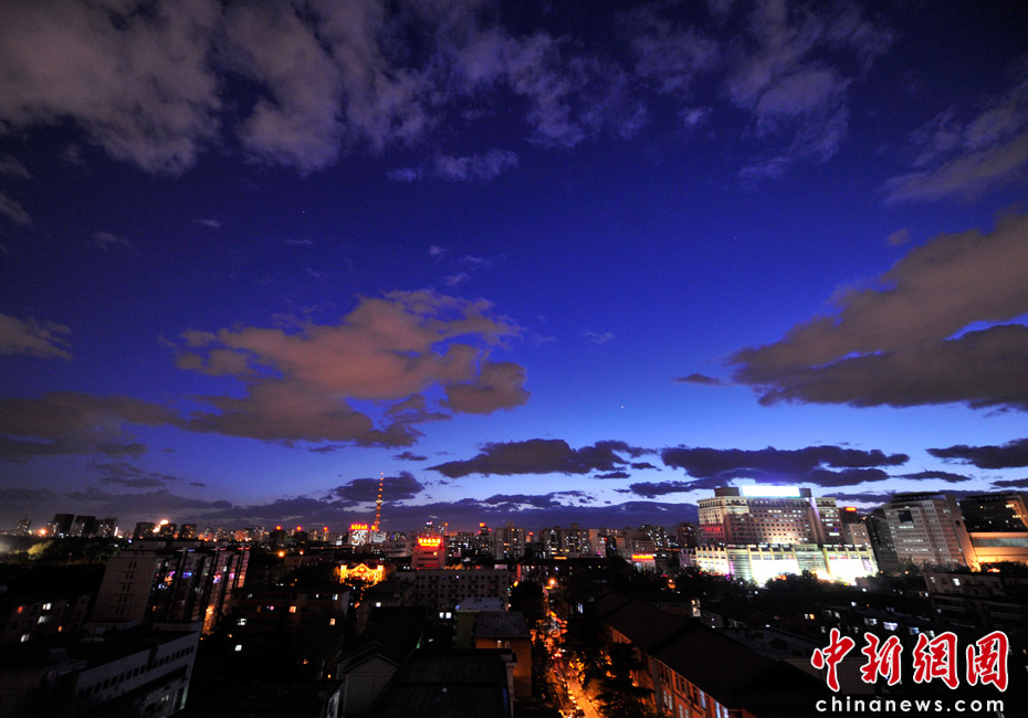 5月5日立夏,京城降雨今晨剛剛結(jié)束,霧氣伺機(jī)又起。傍晚時(shí)分,隨著四級北風(fēng)的到來,京城天氣逐漸轉(zhuǎn)晴,霧氣慢慢消散天空彤云密布夜色瑰麗。中新網(wǎng)記者 金碩 攝