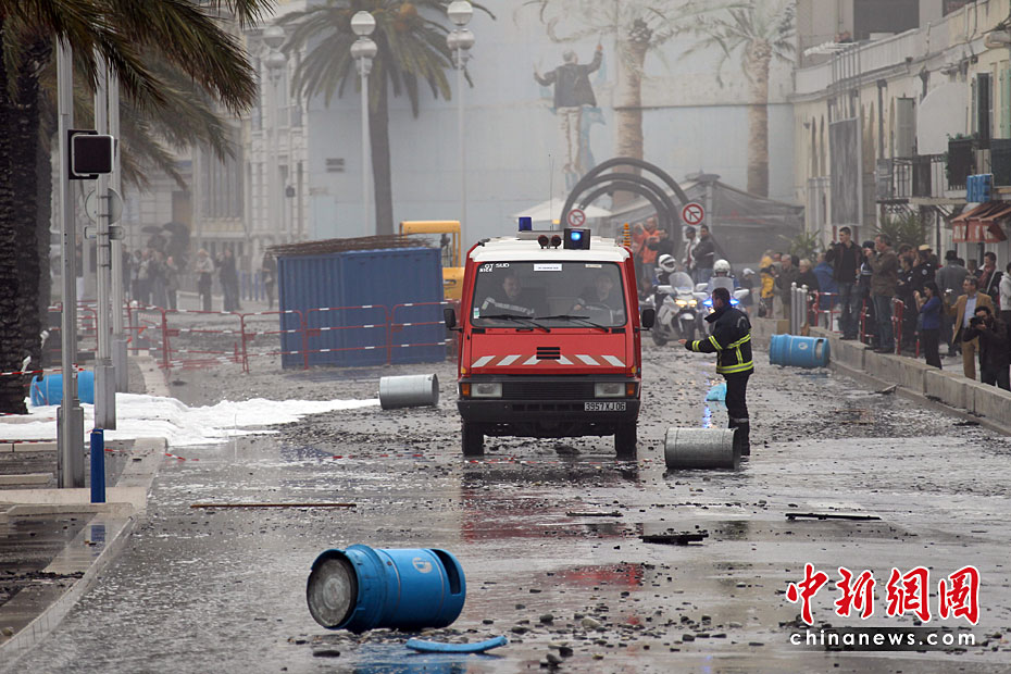 近日,在法國(guó)南部城市尼斯,巨浪襲擊城市的海岸后造成城市道路癱瘓。法國(guó)南部部分地區(qū)遭遇大風(fēng)和巨浪,使當(dāng)?shù)亟煌ê凸╇娛艿讲煌潭鹊挠绊。圖片來源:中國(guó)新聞網(wǎng)