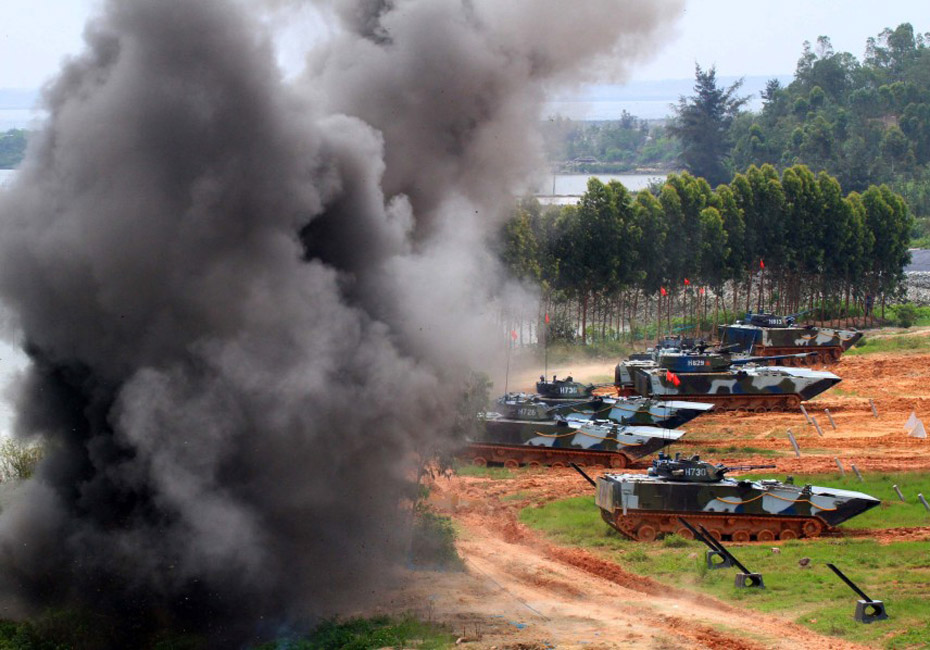 登陸作戰(zhàn)實(shí)兵實(shí)彈演練。圖片來(lái)源:新華網(wǎng) 查春明攝