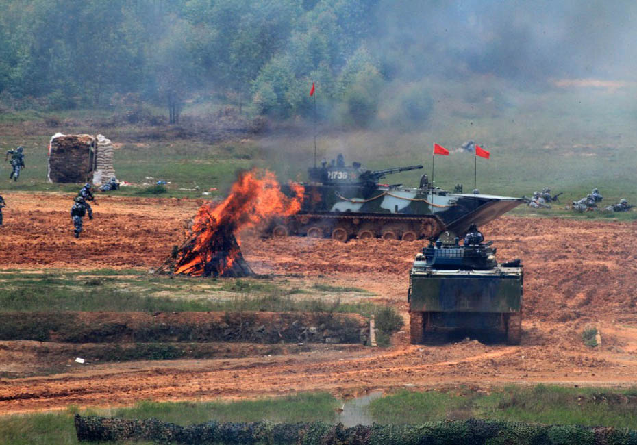 海軍陸戰(zhàn)隊(duì)在訓(xùn)練場(chǎng)進(jìn)行登陸作戰(zhàn)實(shí)兵實(shí)彈演練。圖片來(lái)源:新華網(wǎng) 查春明攝