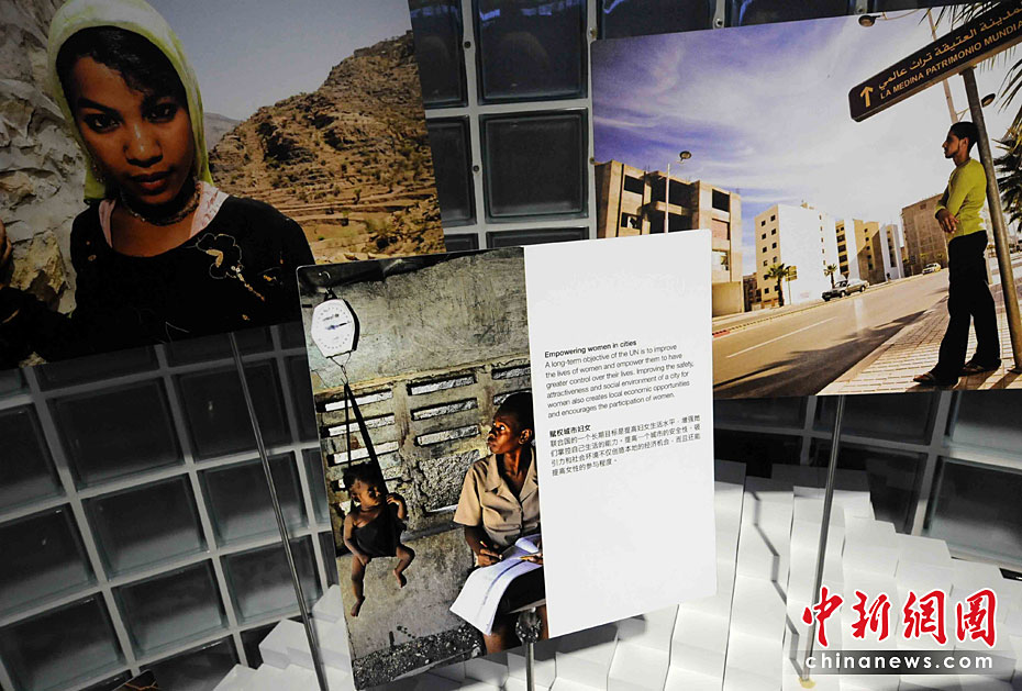 一所藍色的簡樸平房,在5月開園的上海世博會大道邊上,極不顯眼。但是,聯(lián)合國聯(lián)合館的鮮明會標,特別吸引人。這個展館集中了世界衛(wèi)生組織、世界銀行和聯(lián)合國的兒童基金會、糧農(nóng)組織、教科文組織等22個機構(gòu)。圖片來源:中國新聞網(wǎng) 賈國榮 攝