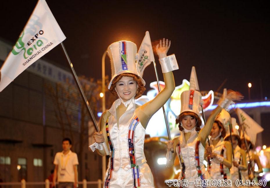 5月2日晚,由一輛輛充滿異域風情的花車和身著盛裝的表演者組成的“歡樂盛裝大巡游”在世博園區(qū)舉行。圖片來源:中國新聞網(wǎng)>>點擊觀看詳細內(nèi)容