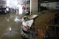 5月10日,廣州中?党堑叵峦\噲鲈馑钠嚱K于重新出水。受5月7日的大雨影響,廣州市東圃地區(qū)的中?党堑牡叵峦\噹彀l(fā)生嚴重的水浸。經過4天日夜不斷地抽水,5月10號上午,地下車庫里面的水終于干了。4天來一直轟鳴的水泵昨日終于停了下來。早晨7時許,眾車主陸續(xù)來到車庫,370多臺車橫七豎八排開,幾只塘虱在淤泥里挪動著。在拖車出庫的時候,不少車主淚流滿面。