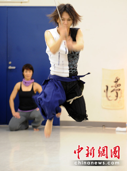 日本白領(lǐng)女性學(xué)習(xí)武士刀減壓