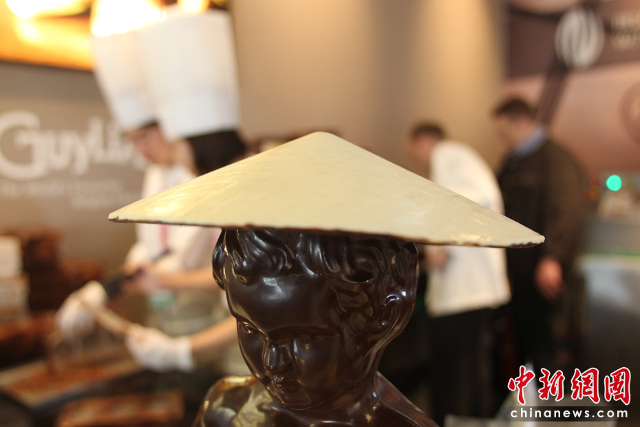 圖為比利時館內(nèi)展示巧克力制作。 中新社記者 蘇丹 攝