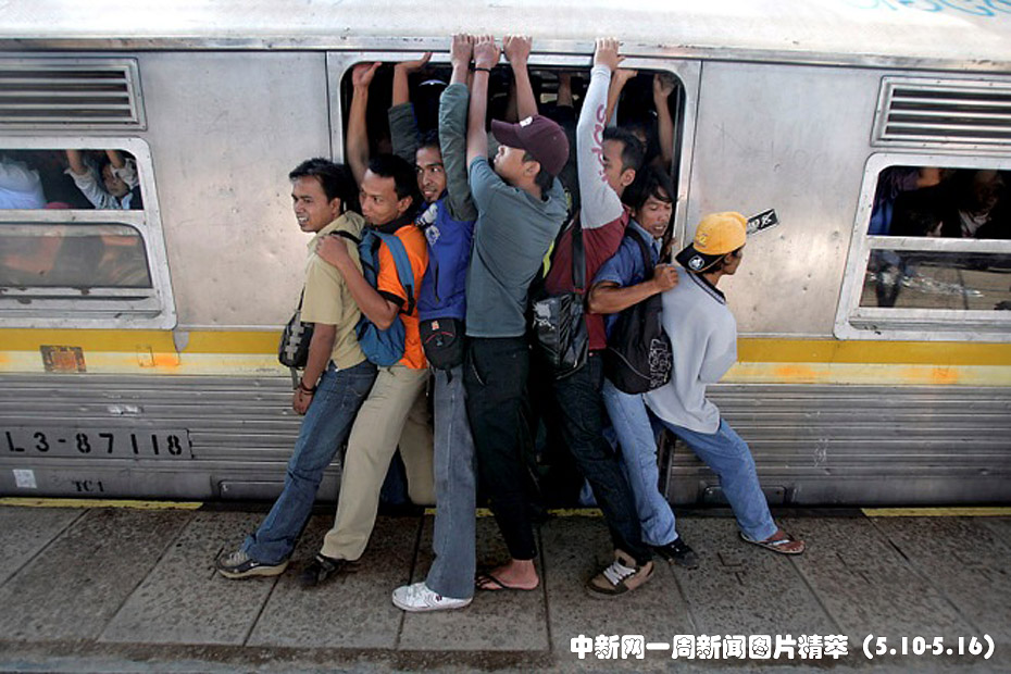 周二(11日),在印度尼西亞雅加達(dá)火車站,人們奮力擠入擁擠的市郊火車。