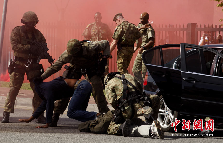 5月17日,南非約翰內(nèi)斯堡,警察舉行防暴演習(xí),為下個(gè)月舉行的世界杯做準(zhǔn)備。 圖片來(lái)源:中國(guó)新聞網(wǎng)
