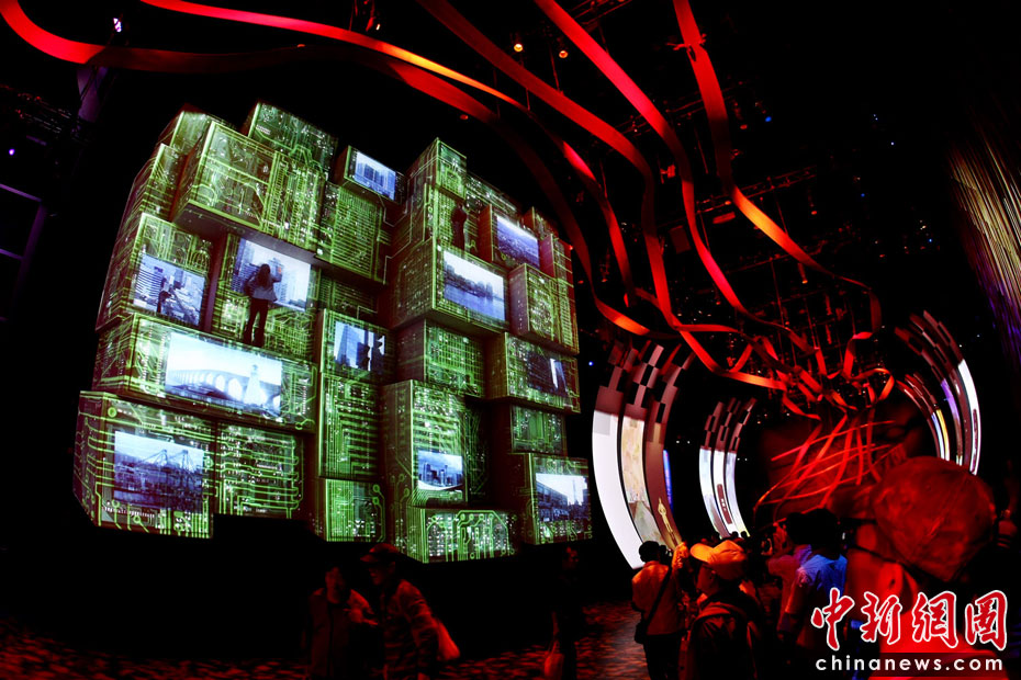 在世博會眾多的展館中,各類的大屏幕展示讓參觀者有如身臨其境,也讓游客們充分感受不同國家、不同地域的文化特色及先進科技理念,如幻似夢的屏幕光影也成為本次世博的最佳看點。圖為加拿大館。中新社記者 杜洋 攝