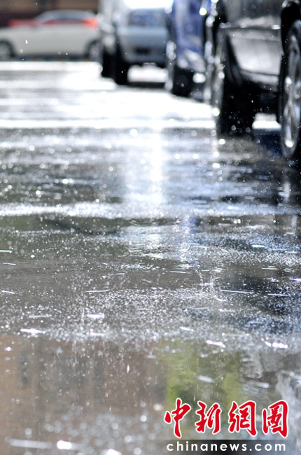 5月18日16時(shí)許,伴隨陣陣?yán)茁暰┏峭唤荡笥,降雨過(guò)后東部天空依然籠罩著烏云,而西邊卻已放晴。中新網(wǎng)記者 金碩 攝