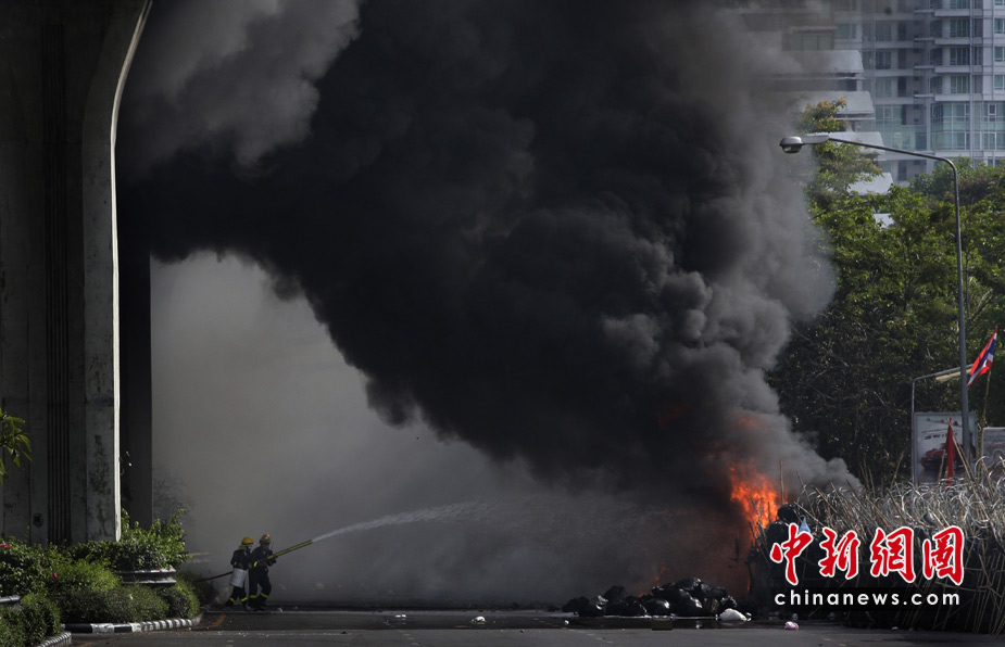 19日,發(fā)起驅(qū)散行動(dòng)的泰國(guó)軍方突破了反政府“紅衫軍”示威者在曼谷市中心所筑路障,進(jìn)入其營(yíng)地內(nèi),雙方爆發(fā)槍?xiě)?zhàn)。目擊者稱,已有至少9人受傷,多數(shù)是被槍擊中。