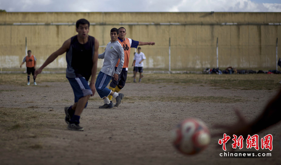 5月18日,阿根廷布宜諾斯艾利斯,作為一項(xiàng)文化活動(dòng)的一部分,阿根廷政府在世界杯到來之前組織幾家監(jiān)獄進(jìn)行足球比賽。