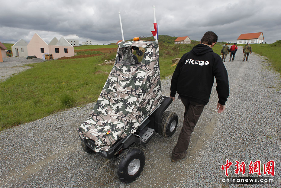 當(dāng)?shù)貢r(shí)間5月18日,德國南部哈默爾堡舉行了歐洲軍用機(jī)器人大賽。歐洲各國軍用機(jī)器人在大賽上一展身手。圖片來源:中國新聞網(wǎng)