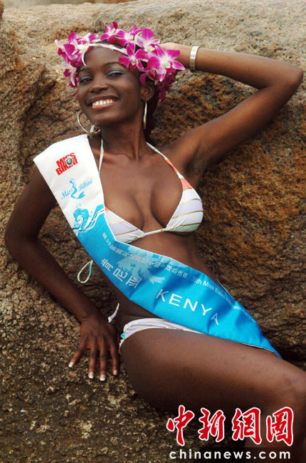 5月21日,海南三亞參加第35屆國際比基尼小姐全球總決賽的64位各國佳麗開始了她們?cè)谌齺啚槠?天的時(shí)尚美麗之旅。當(dāng)日,佳麗們前往著名的天涯海角、大小洞天等景區(qū),拍攝外景,體驗(yàn)美麗的三亞熱帶風(fēng)光,展現(xiàn)美麗風(fēng)采。中新社記者 尹海明 攝