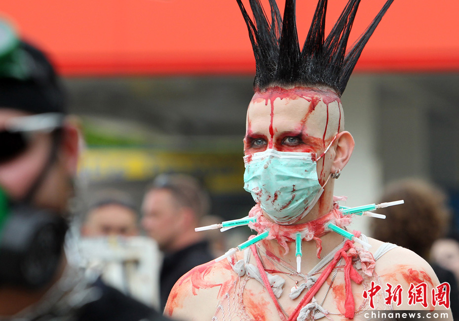 5月21日,德國萊比錫一年一度的哥特藝術(shù)節(jié)開幕。哥特節(jié)為哥特浪漫主義愛好者提供哥特式的音樂會、展覽、聚會等活動,約有2萬人參加了今年的哥特節(jié)。圖片來源:中國新聞網(wǎng)