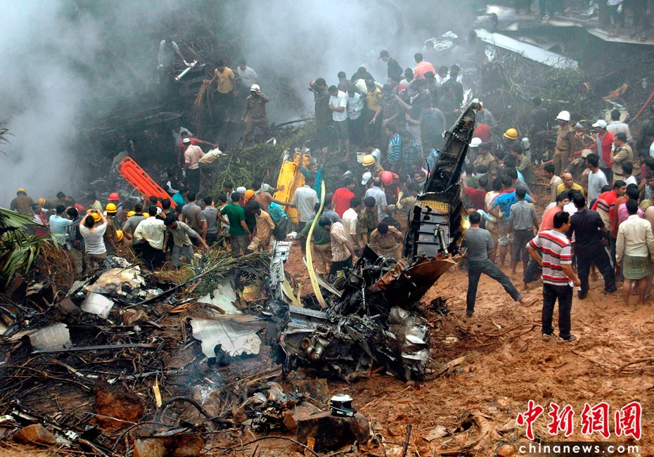 5月22日,印度一架客機在南部卡納塔克邦門格洛爾市降落時失事,造成至少160人喪生。目擊者稱,當天早上6點左右,這架飛機準備在馬拉格爾機場降落,但不知何故沖出跑道然后一頭扎到機場附近的叢林中起火爆炸。圖片來源:中國新聞網(wǎng)