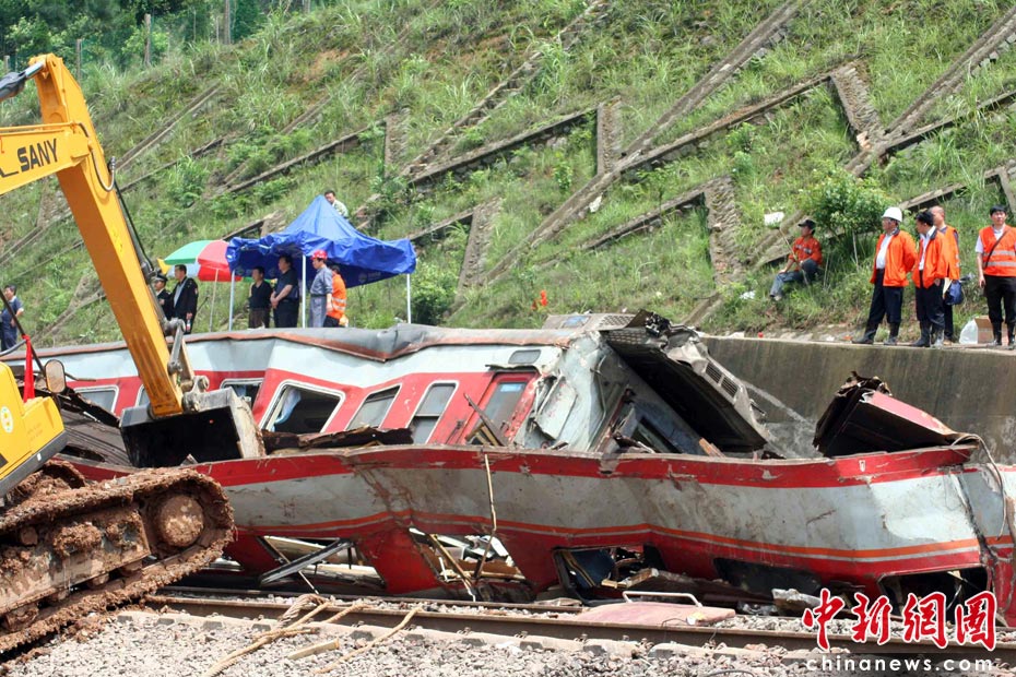 中新網(wǎng)東鄉(xiāng)5月23日電(艾永全 何柳斌 劉占昆)23日下午14時,距離滬昆鐵路客運列車脫線事發(fā)已經(jīng)12小時,武警、消防、醫(yī)護、交警、特警仍在事故現(xiàn)場緊急救援。 艾永全 攝