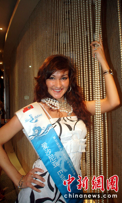 5月24日,海南三亞,正在此間參加第35屆國(guó)際比基尼小姐全球總決賽的64位佳麗,參觀了三亞一家珍珠博物館。佳麗們對(duì)漂亮的珍珠十分鐘愛,在攝影師前擺出各種“POSE”,留下美麗身影。 中新社記者 尹海明攝