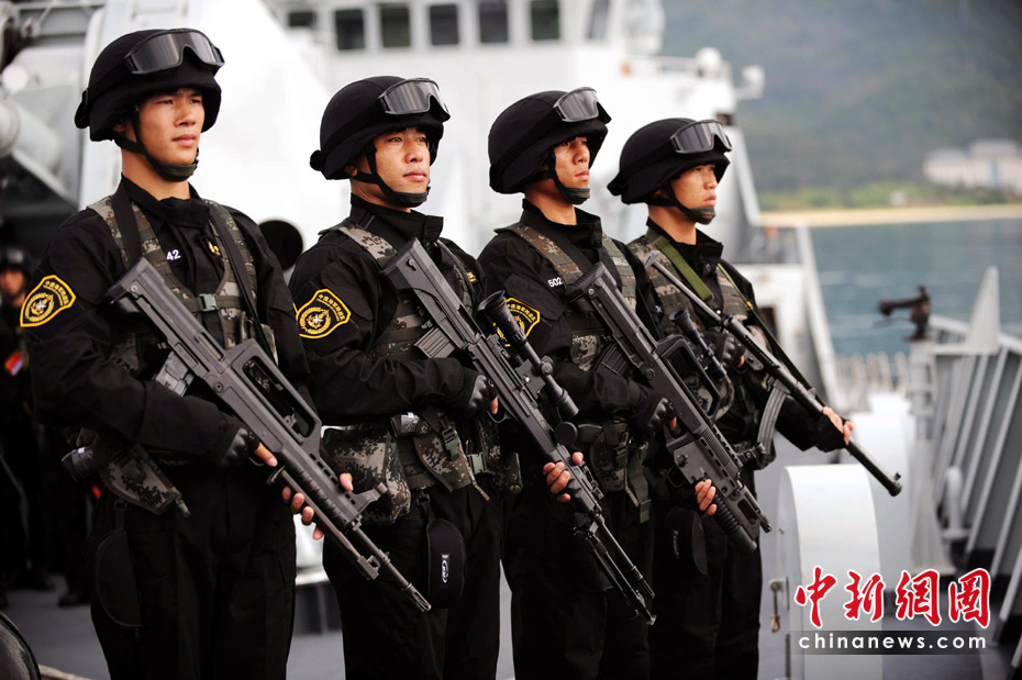為了更好的進(jìn)行威懾海盜,特戰(zhàn)隊(duì)員攜帶了多種輕武器。江山 攝