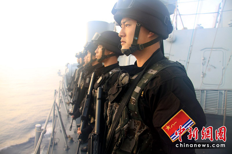 4月22日早晨,參加升旗儀式,特戰(zhàn)隊(duì)員沐浴在濃霧中。胡軍 攝