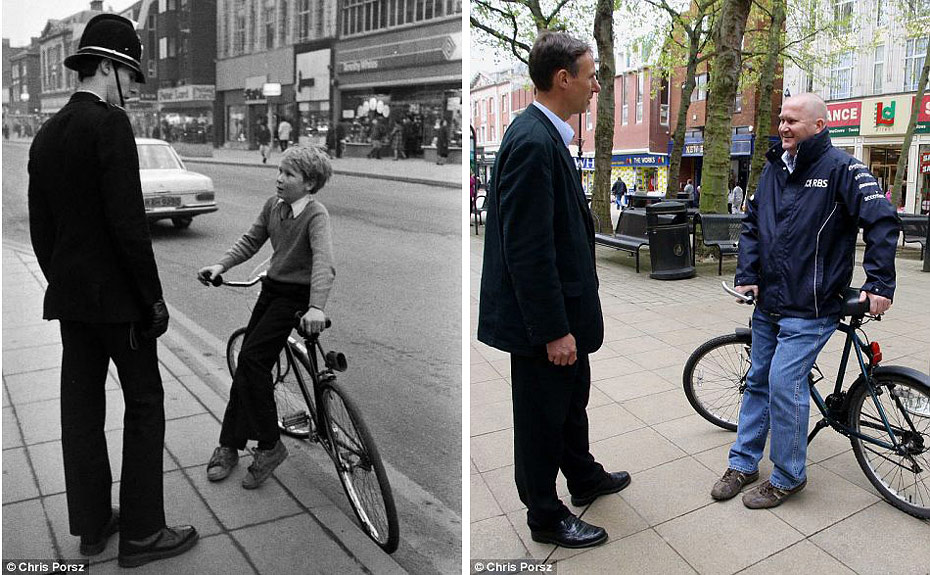 照片上的兩位主人公都無法記起當時究竟在聊些什么,大概是調皮又愛炫耀的小男孩把車騎上了機動車道被警察叔叔批評吧,F(xiàn)在小男孩長大了,當年的警界新人也成了退休的老警官。