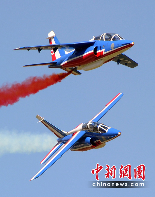 5月25日,法國(guó)巡邏兵特技飛行表演隊(duì)在普羅旺斯地區(qū)進(jìn)行驚險(xiǎn)的飛行表演。