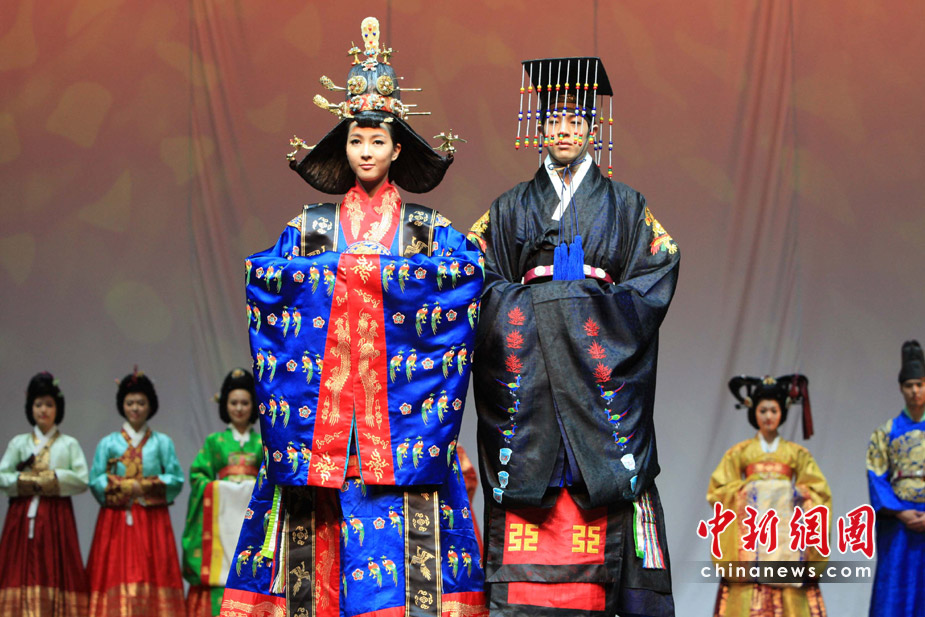 5月26日,韓服時(shí)裝秀在上海世博會(huì)上演,其宮廷服裝為別致內(nèi)容之一。當(dāng)日是世博會(huì)韓國館日,韓國舉行多項(xiàng)文藝表演推廣該國文化。中新社發(fā) 潘索菲 攝