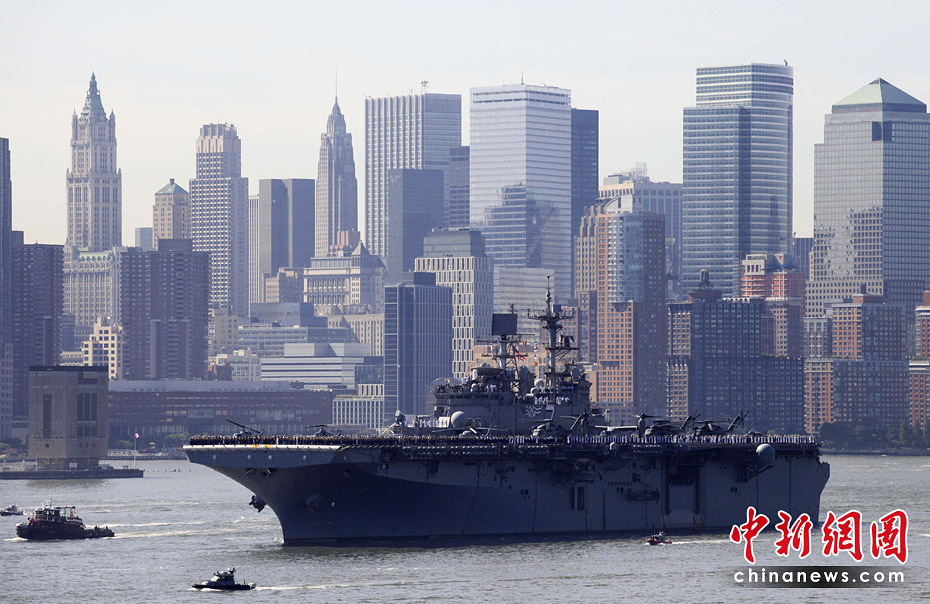 當(dāng)?shù)貢r(shí)間5月26日,美國(guó)第23屆紐約艦隊(duì)周開(kāi)幕,包括“硫磺島”號(hào)兩棲攻擊艦在內(nèi)的11艘參加艦隊(duì)周活動(dòng)的軍艦由南向北在哈得孫河面上游弋。紐約民眾將以停靠在曼哈頓哈得孫河86號(hào)碼頭的“無(wú)畏號(hào)”航母博物館為中心,展開(kāi)為期一周的慶祝和紀(jì)念活動(dòng)。圖片來(lái)源:中國(guó)新聞網(wǎng)