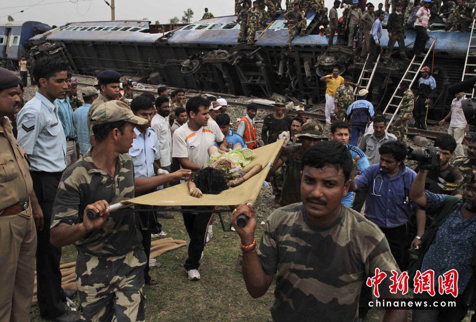 印度東部西孟加拉邦火車遇襲脫軌事故已經(jīng)發(fā)生30多個小時,29日救援人員繼續(xù)在現(xiàn)場進(jìn)行搜救工作。西孟加拉邦警察局長表示,截至目前已經(jīng)發(fā)現(xiàn)110具尸體。同時仍有多達(dá)50人下落不明。圖為救援現(xiàn)場。