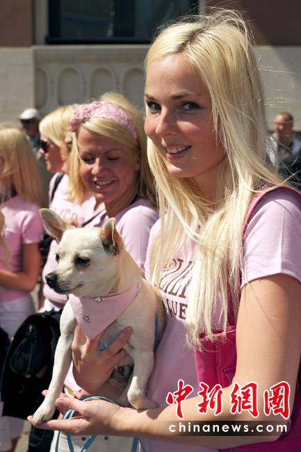 5月29日,在拉脫維亞首都里加,眾多金發(fā)美女身著艷麗裝扮在街頭游行,大秀嫵媚身材。