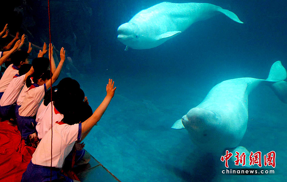 5月28日,北京海洋館從俄羅斯引進(jìn)的兩頭極地白鯨首次與游客見面。同時,北京海洋館舉辦“攜手‘北極精靈’,共倡低碳生活”環(huán)保公益活動,呼吁人類應(yīng)該保護(hù)海洋環(huán)境,保護(hù)珍惜物種。中新社發(fā) 張宇 攝
