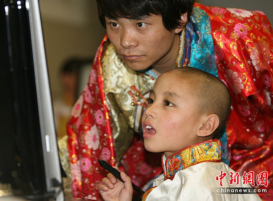 5月31日,玉樹(shù)地震孤兒多杰仁青在老師的指導(dǎo)下在北京國(guó)家圖書(shū)館體驗(yàn)新開(kāi)通的少兒數(shù)字圖書(shū)館,迎接六一兒童節(jié)。這批玉樹(shù)孤兒共23名,于5月23日抵京,由“中華少年兒童慈善救助基金會(huì)”安置。在北京度過(guò)“六一”后,他們還將休整3個(gè)月,待災(zāi)區(qū)情況穩(wěn)定后,中華兒慈會(huì)將與當(dāng)?shù)氐拿裾块T(mén)協(xié)商,在征求孤兒本人意愿的基礎(chǔ)上,或讓他們返回原地上學(xué),或者在內(nèi)地長(zhǎng)期居住;饡(huì)將一直支持他們到18歲成人。中新社發(fā) 蘇丹 攝
