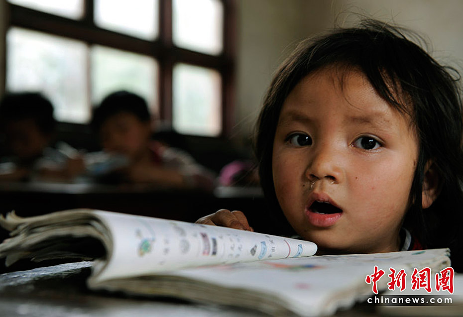貴州省黔南州惠水縣楊茂村房前小學(xué)。一名年僅4歲就被送往學(xué)校讀書的一年級留守苗族娃娃。彭年/CFP