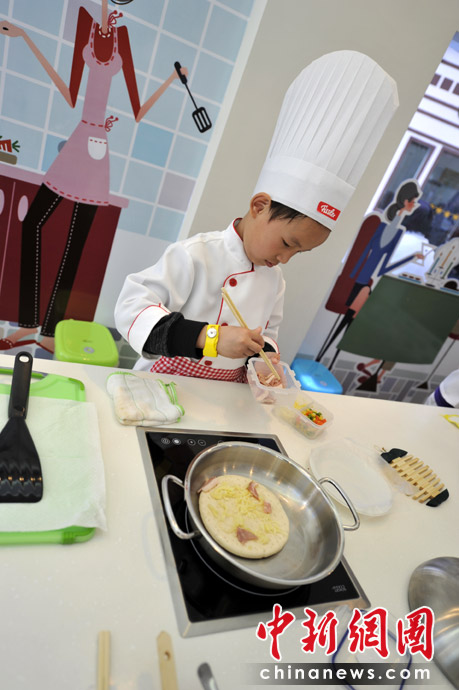圖為“小廚師”在做批薩。 中新網(wǎng)記者 王紅綱 攝