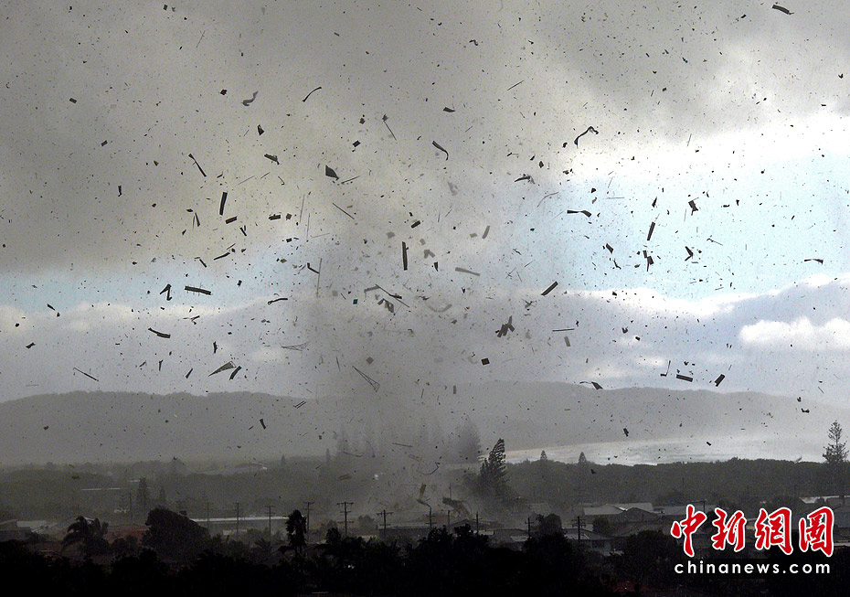 6月3日,澳大利亞新南威爾士州海濱城鎮(zhèn)倫諾克斯黑德遭到龍卷風(fēng)襲擊,大樹被連根拔起,屋頂被掀翻,重型拖車也被拋到半空中。數(shù)千所民居停電。一共有12所房屋在這場(chǎng)龍卷風(fēng)中被摧毀,6人受傷,傷勢(shì)不重。所幸沒有人員死亡的報(bào)告。圖片來源:中國(guó)新聞網(wǎng)