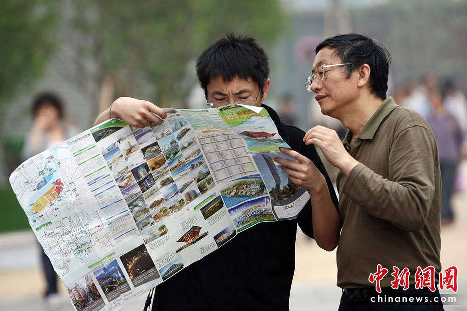 截至6月5日19點(diǎn)30分,上海世博會(huì)累計(jì)參觀者已超過1000萬人次。據(jù)悉,上海世博會(huì)的規(guī)劃用地為5.28平方公里,約242個(gè)國(guó)家和國(guó)際組織參展分布在浦東和浦西兩大區(qū)域。要想在這么大的地方找到自己想去的地方,那么世博地圖就是必須的裝備。圖為上海世博園內(nèi)游客正在地圖上尋找自己要去的地方。中新社記者 杜洋 攝