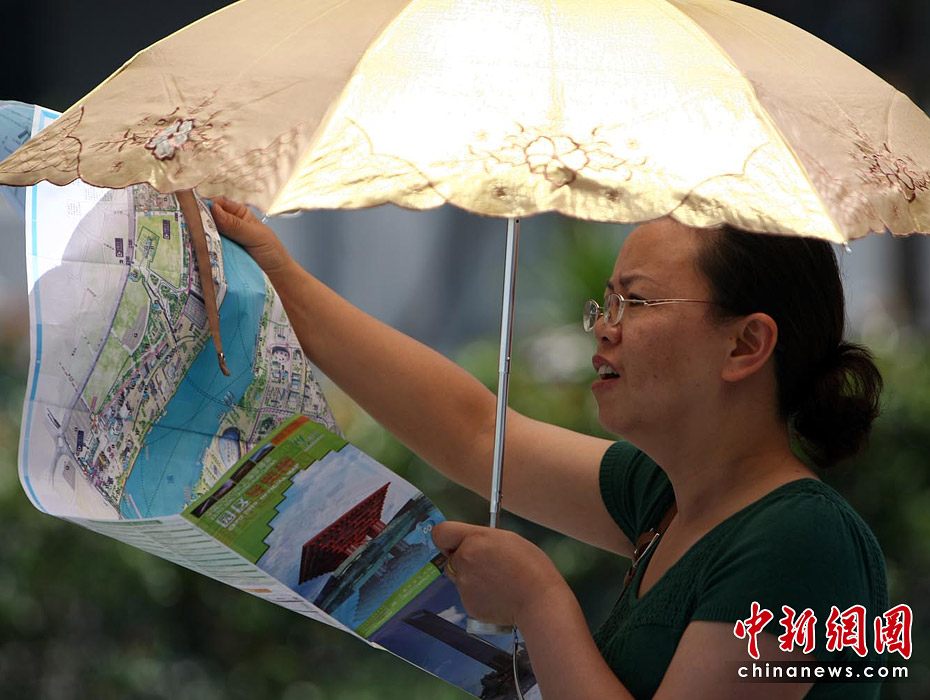 截至6月5日19點30分,上海世博會累計參觀者已超過1000萬人次。據(jù)悉,上海世博會的規(guī)劃用地為5.28平方公里,約242個國家和國際組織參展分布在浦東和浦西兩大區(qū)域。要想在這么大的地方找到自己想去的地方,那么世博地圖就是必須的裝備。圖為上海世博園內(nèi)游客正在地圖上尋找自己要去的地方。中新社記者 杜洋 攝