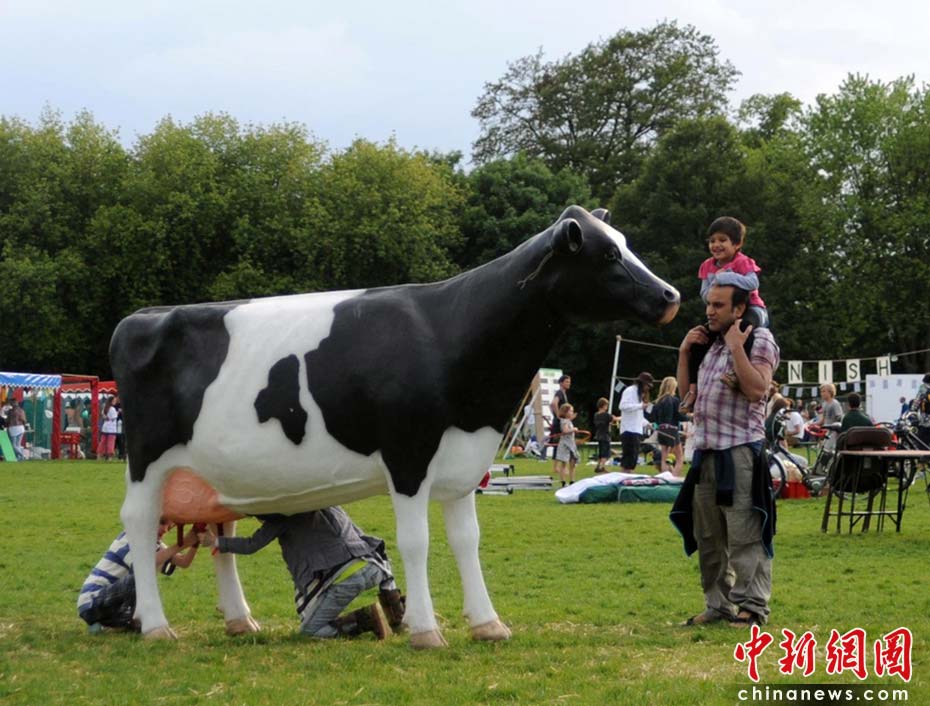 當(dāng)?shù)貢r間2010年6月6日,英國倫敦舉行卡姆登綠色市集(Camden Green Fair),這是英國倫敦每年環(huán)保領(lǐng)域的“重頭戲”。本屆市集的主旨是要喚起大眾對環(huán)境問題的關(guān)注,選擇更加可持續(xù)發(fā)展的生活方式。據(jù)活動主辦方預(yù)計,本屆市集將吸引來自英國各地和世界各國的2萬多人參加。圖為人們在一個奶牛模型旁體驗“手工擠牛奶”的樂趣。Fiona/攝 Fiona 馬小剛/文