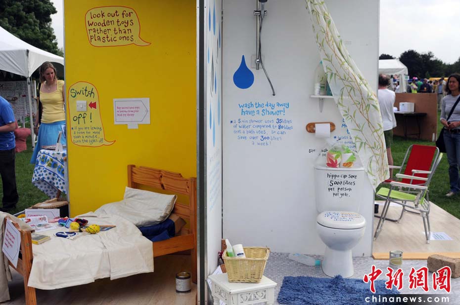 當(dāng)?shù)貢r間2010年6月6日,英國倫敦舉行卡姆登綠色市集(Camden Green Fair),這是英國倫敦每年環(huán)保領(lǐng)域的“重頭戲”。本屆市集的主旨是要喚起大眾對環(huán)境問題的關(guān)注,選擇更加可持續(xù)發(fā)展的生活方式。據(jù)活動主辦方預(yù)計,本屆市集將吸引來自英國各地和世界各國的2萬多人參加。圖為“家”的模型,共分為四部分:客廳、兒童臥室、衛(wèi)生間、 廚房。設(shè)計的每個小細(xì)節(jié)都體現(xiàn)出設(shè)計者“讓生活更美好”的理念。Fiona/攝 Fiona 馬小剛/文