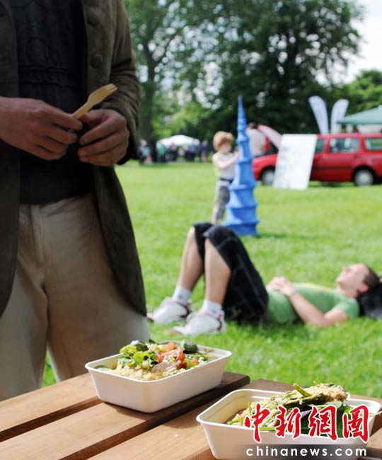 當(dāng)?shù)貢r(shí)間2010年6月6日,英國倫敦舉行卡姆登綠色市集(Camden Green Fair),這是英國倫敦每年環(huán)保領(lǐng)域的“重頭戲”。本屆市集的主旨是要喚起大眾對(duì)環(huán)境問題的關(guān)注,選擇更加可持續(xù)發(fā)展的生活方式。據(jù)活動(dòng)主辦方預(yù)計(jì),本屆市集將吸引來自英國各地和世界各國的2萬多人參加。圖為各種素食是綠色展會(huì)的絕對(duì)“主力”。Fiona/攝 Fiona 馬小剛/文
