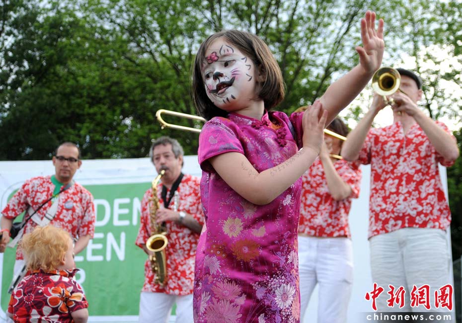 當(dāng)?shù)貢r(shí)間2010年6月6日,英國倫敦舉行卡姆登綠色市集(Camden Green Fair),這是英國倫敦每年環(huán)保領(lǐng)域的“重頭戲”。本屆市集的主旨是要喚起大眾對環(huán)境問題的關(guān)注,選擇更加可持續(xù)發(fā)展的生活方式。據(jù)活動主辦方預(yù)計(jì),本屆市集將吸引來自英國各地和世界各國的2萬多人參加。圖為一名英國小女孩兒身著中式旗袍翩翩起舞,宣傳環(huán)保。Fiona/攝 Fiona 馬小剛/文