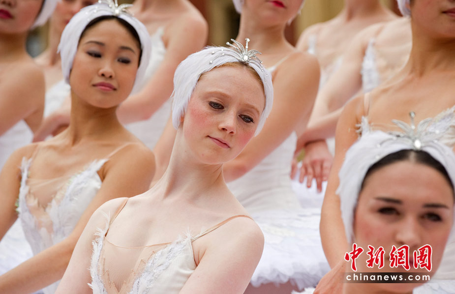 英國國家芭蕾舞團6月8日迎來60周年生日,60名舞蹈演員在倫敦皇家艾伯特大廳附近合影。英國國家芭蕾舞團將于本月9日至19日在皇家艾伯特大廳上演經(jīng)典芭蕾舞劇“天鵝湖”。