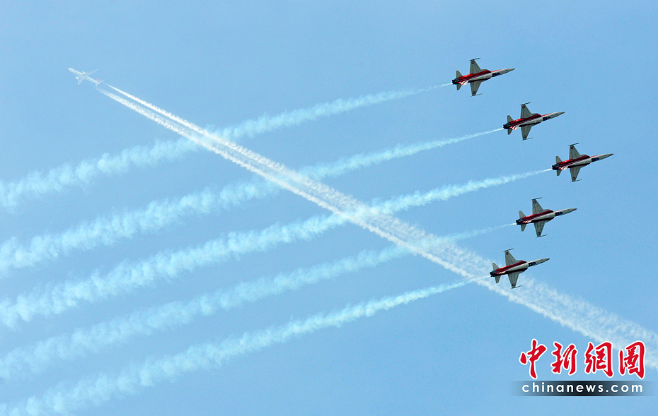 2010年柏林國際航空展于當地時間6月8日在德國柏林舍內費爾德機場開幕。9日,瑞士飛行表演隊在航展上演了精彩的飛行表演。圖片來源:中國新聞網
