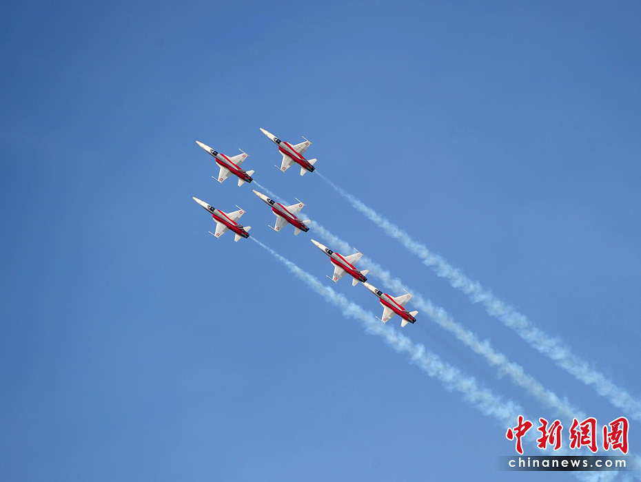 2010年柏林國際航空展于當地時間6月8日在德國柏林舍內費爾德機場開幕。9日,瑞士飛行表演隊在航展上演了精彩的飛行表演。圖片來源:中國新聞網