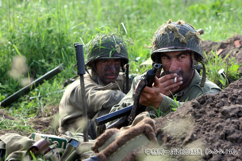 6月5日,諾曼底登陸66周年前夕,一批演員身著二戰(zhàn)時期美軍軍服,在法國諾曼底卡倫坦重現(xiàn)了這次著名的戰(zhàn)役。圖片來源:中國新聞網(wǎng)>>點擊觀看詳細內(nèi)容