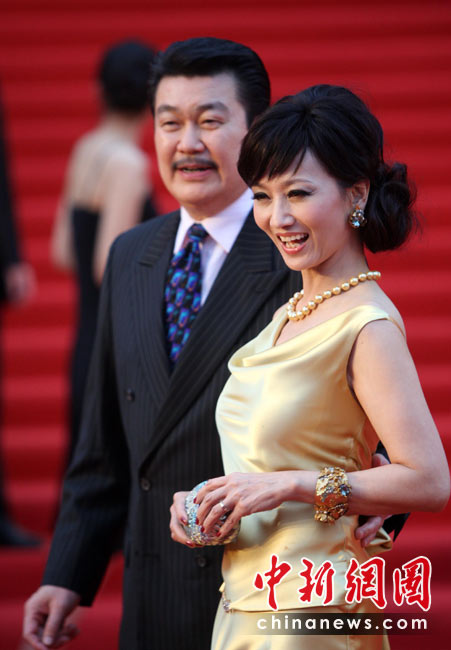 6月12日,第十三屆上海國際電影節(jié)開幕式在上海大劇院舉行。趙雅芝夫婦攜手出席開幕式紅毯儀式。中新社發(fā) 湯彥俊 攝