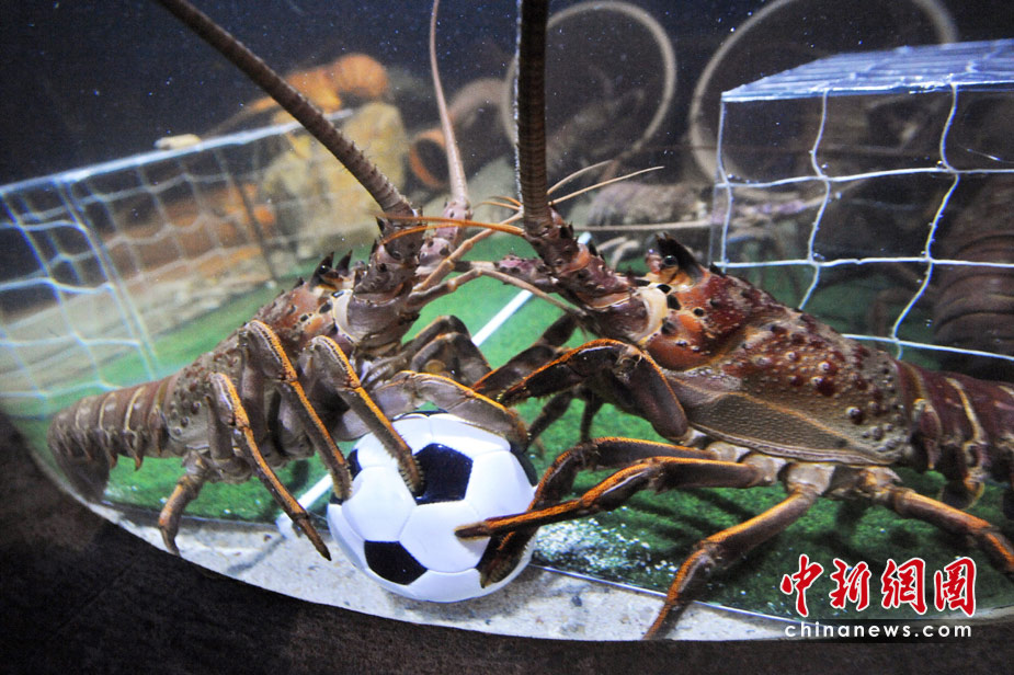 當(dāng)?shù)貢r(shí)間6月15日,德國(guó)北部,水族館里的海洋生物爭(zhēng)搶填滿飼料的足球。