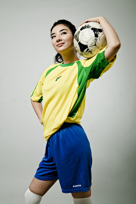 近日,黃奕身穿巴西隊(duì)球衣拍攝了一組世界杯足球?qū)懻,為南非世界杯助威喝彩?/p>