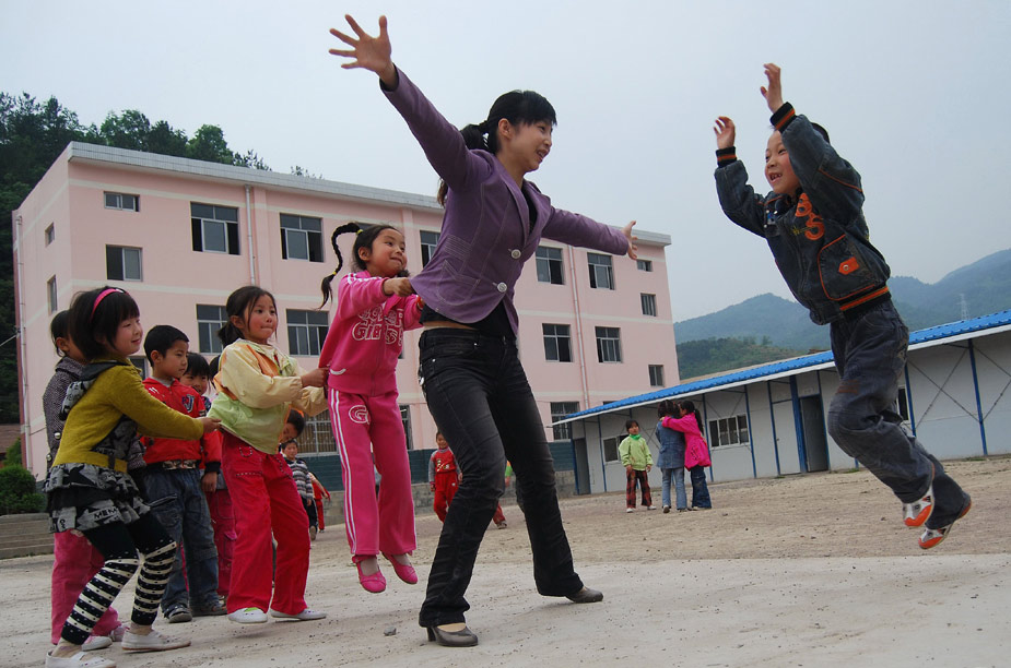 2009年5月4日,全國抗震英雄---陜西寧強黃壩驛鄉(xiāng)中心小學(xué)教師王敏,正在和學(xué)生們一起做老鷹抓小雞游戲,用歡笑聲驅(qū)散了地震帶來的陰霾。當日她榮獲第十三屆“中國青年五四獎。”